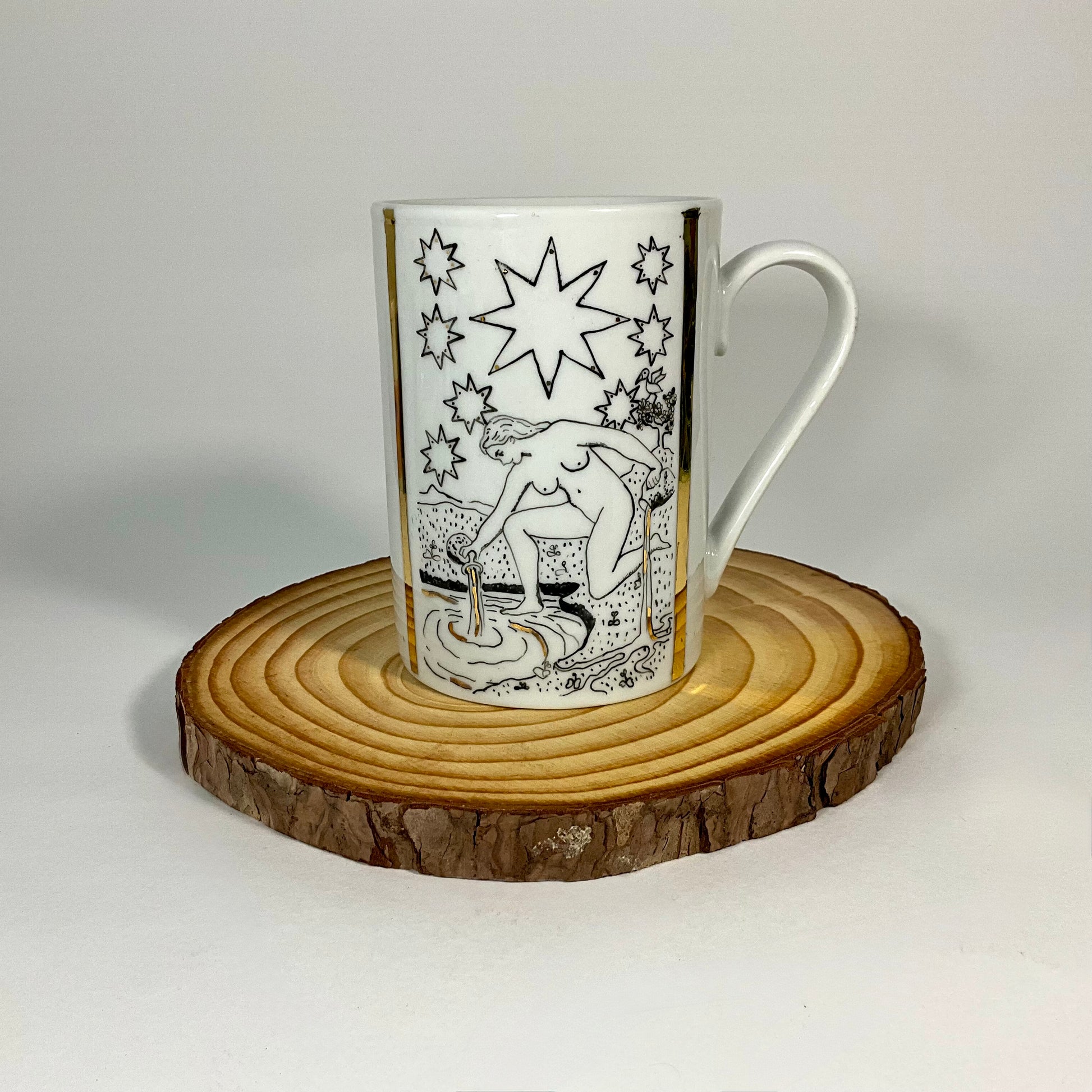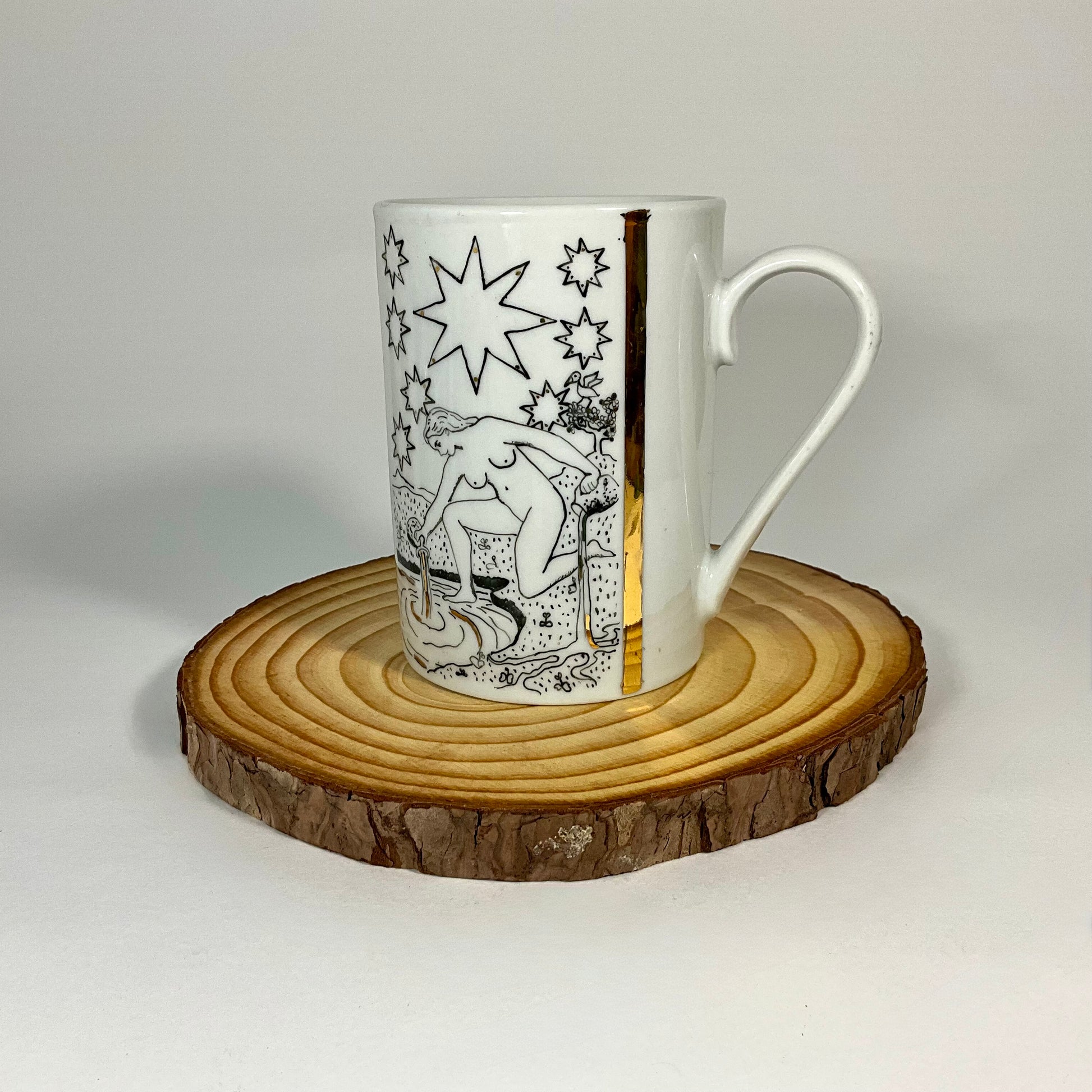 Tazza dipinta a mano. È consigliato il lavaggio a mano. Data la presenza di oro, non utilizzare in microonde.