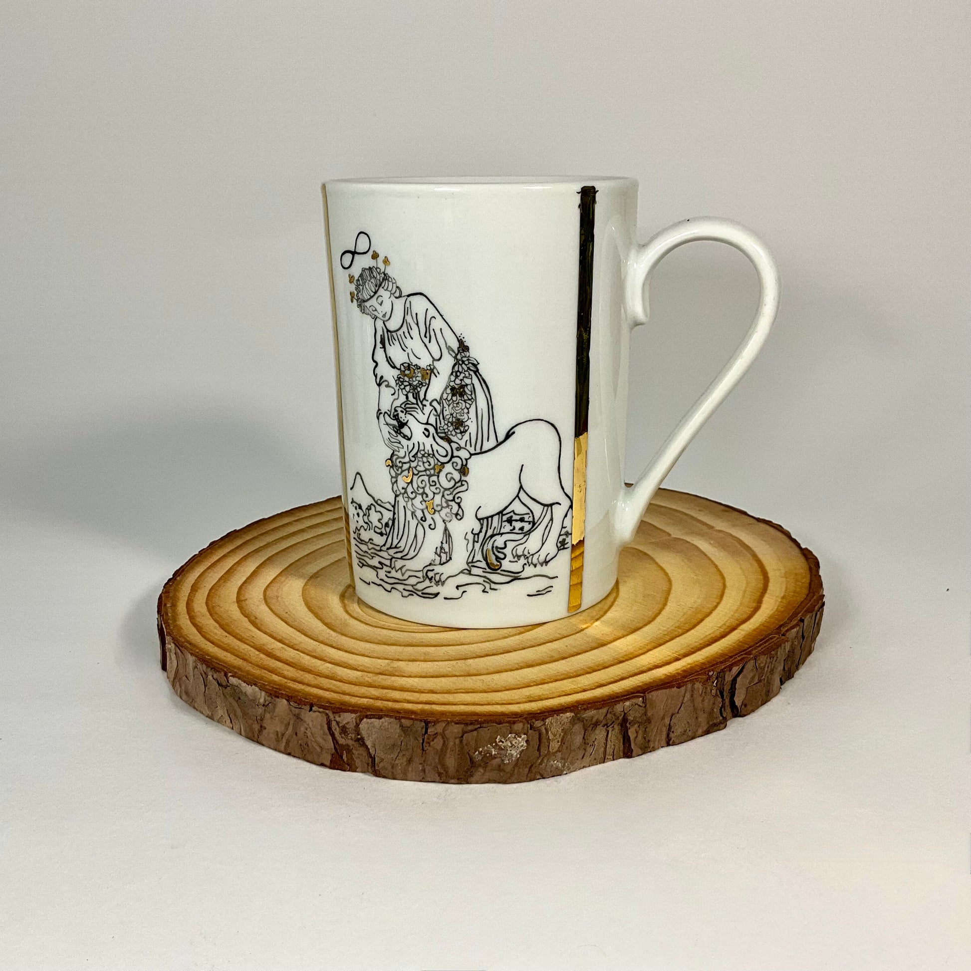 Tazza dipinta a mano. È consigliato il lavaggio a mano. Data la presenza di oro, non utilizzare in microonde.